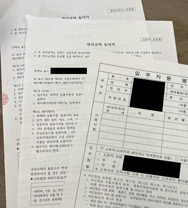 관리사무소 가서 할 수 있습니다. 입주 등록을 합니다.