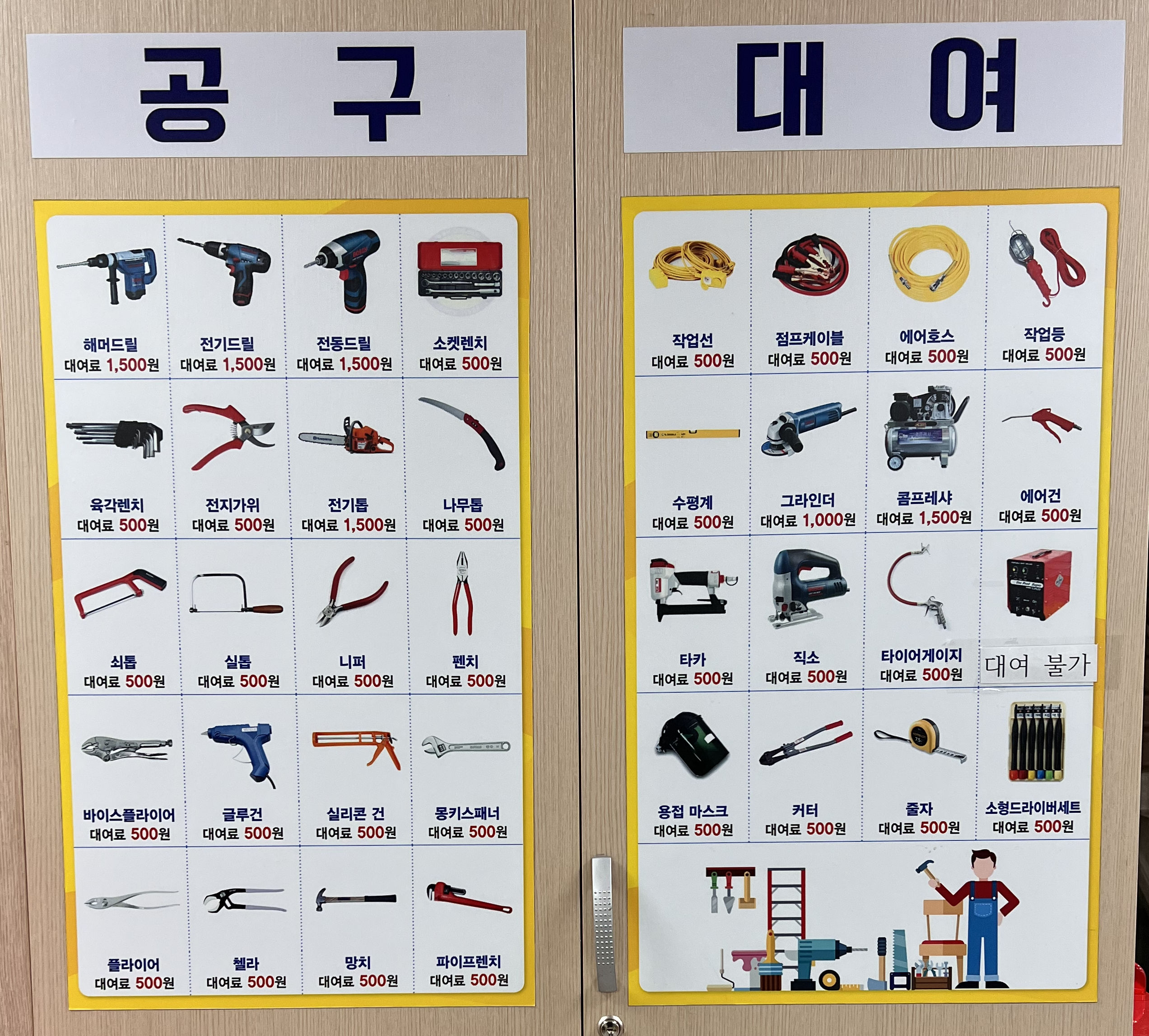심지어 해비한 공구는 주민센터에서 대여할 수 있습니다. (가시기 전에 주민센터에 미리 물어보시길 바랍니다)